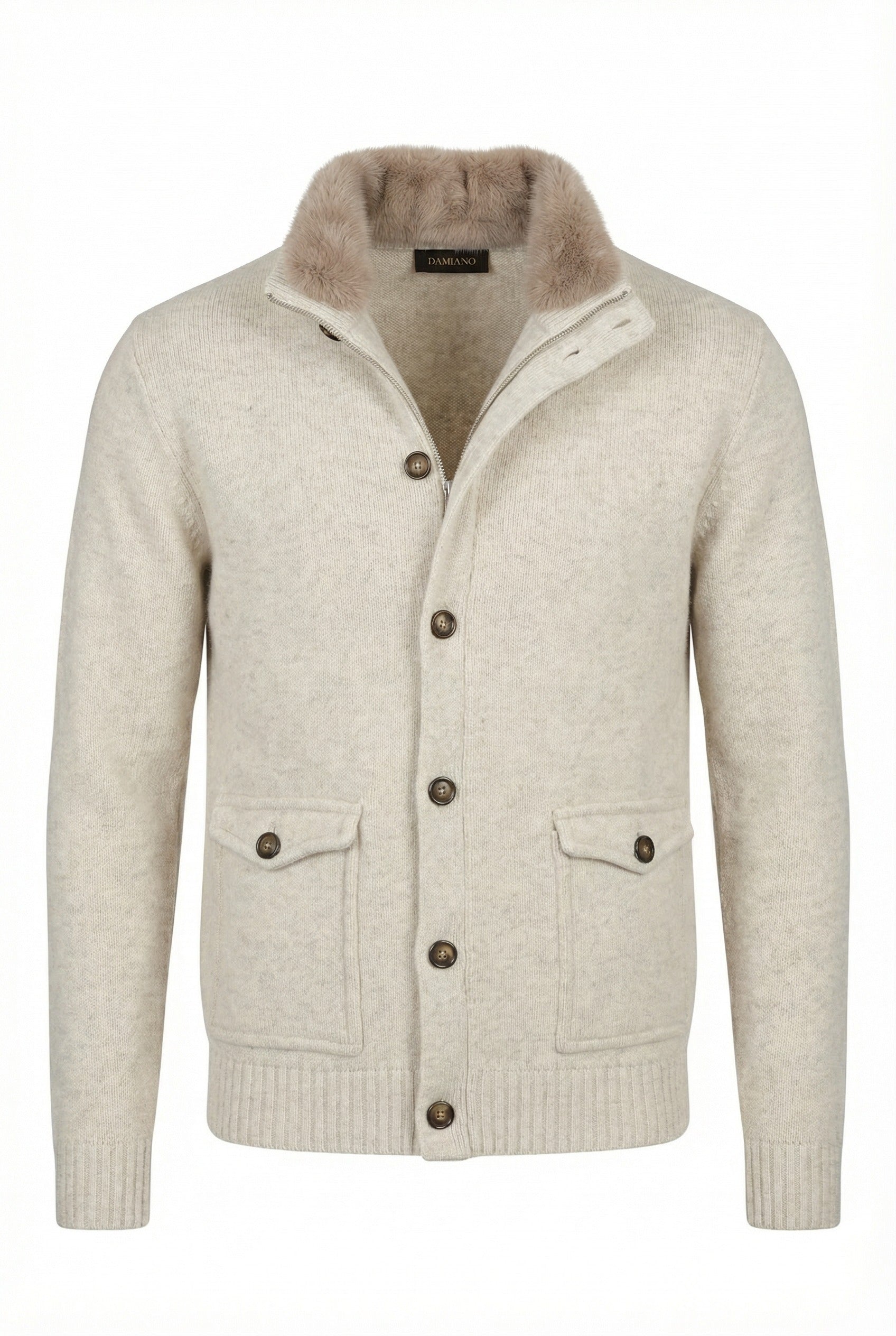 Wool cardigan jacket with fur
